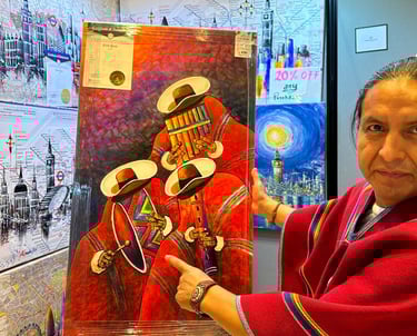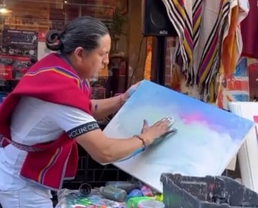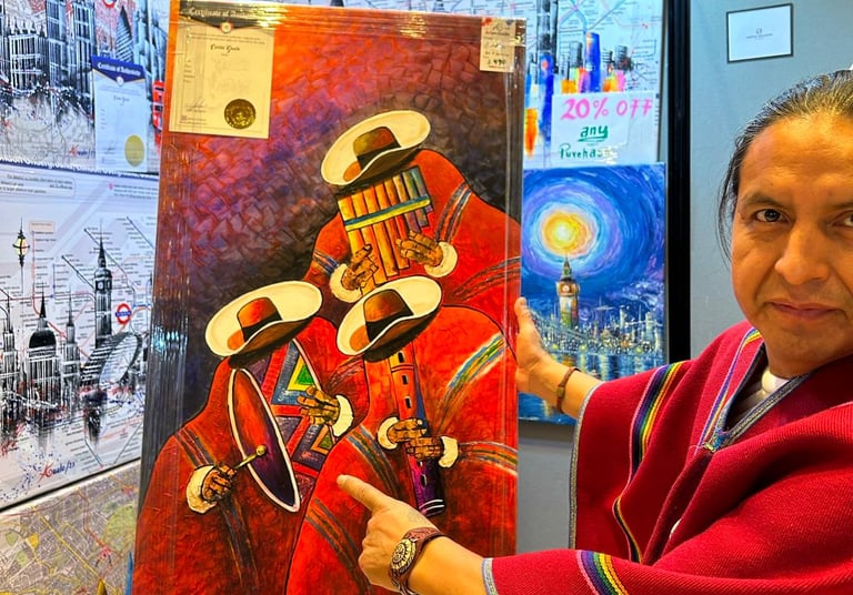 Carlos Gualo, with his DactilArte technique, paints exclusively with his fingers, capturing the essence of London. His works reflect a direct connection between his creativity and the canvas, bringing the city to life with a personal touch and vibrant textures.